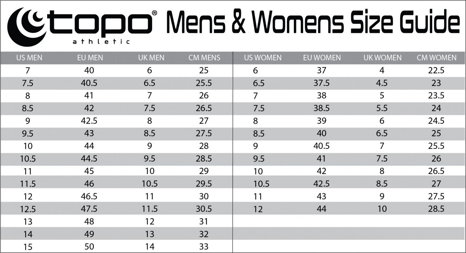Størrelsesguide for TOPO